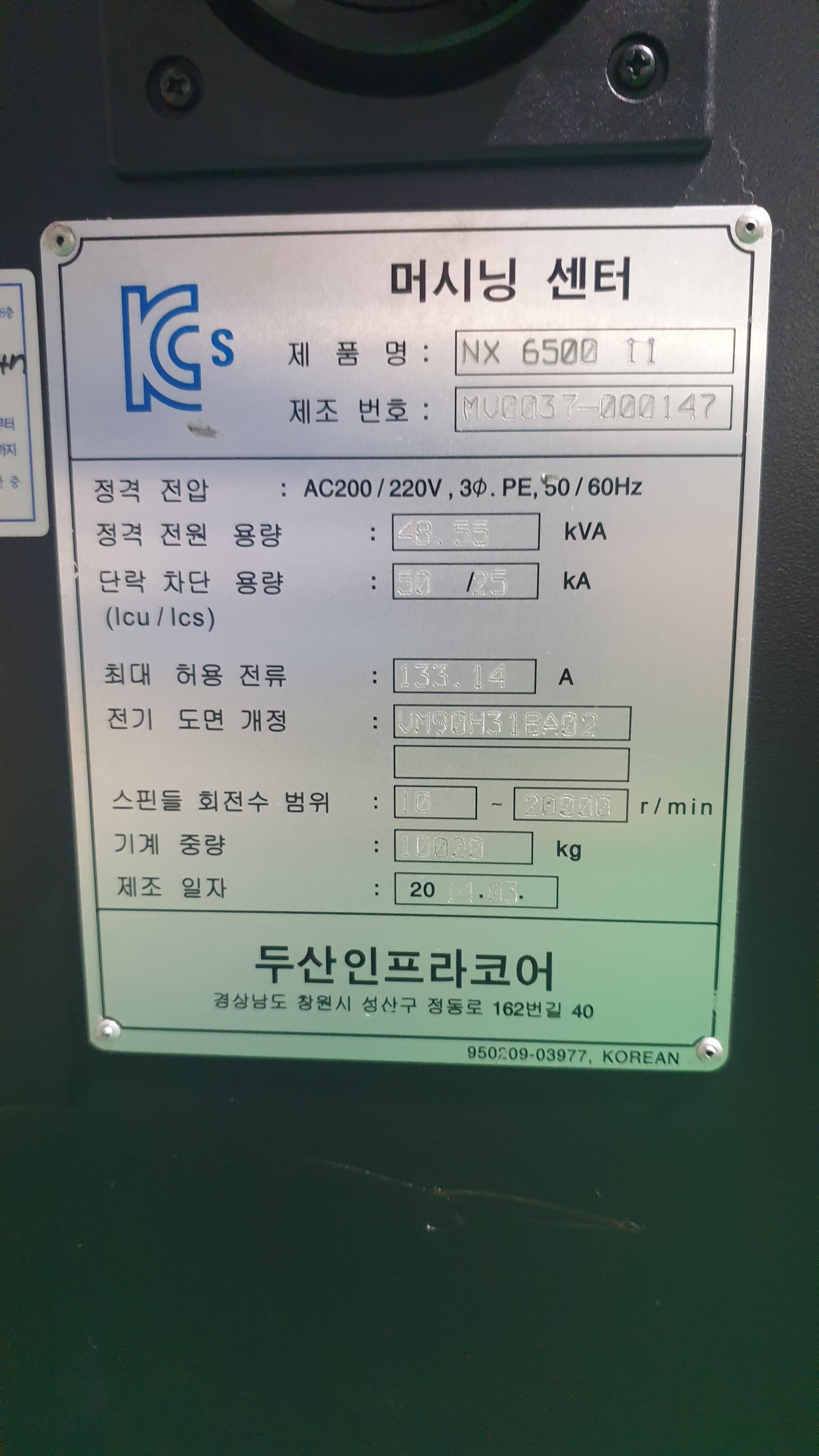 1. 모델명 : 두산 NX-6500II 금형 고속가공기